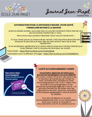 Notre service CAL maintenant à l’honneur dans l’infolettre de l’école Jean-Piaget ! Merci de partager nos ressources avec vos familles et élèves.