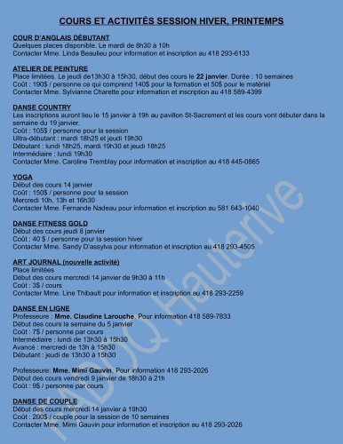 Reprise des activités pour la session d’hiver et printemps
