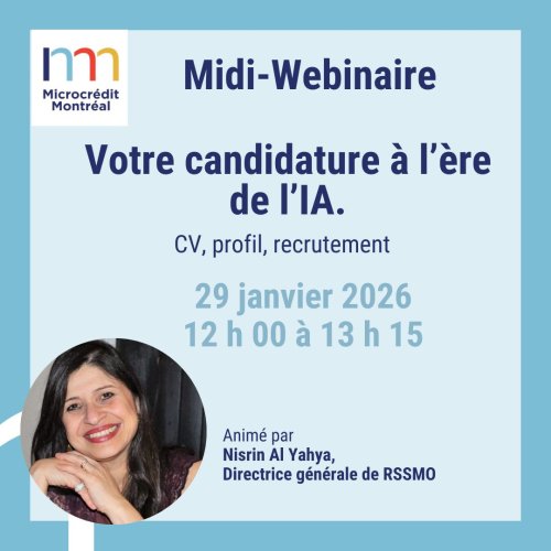 Pour bien amorcer 2026, Microcrédit Montréal vous propose une série de webinaires gratuits, conçus pour vous outiller dans la gestion de votre carrière, de vos finances et de votre entreprise, afin d’atteindre vos objectifs professionnels et financiers avec plus de confiance.